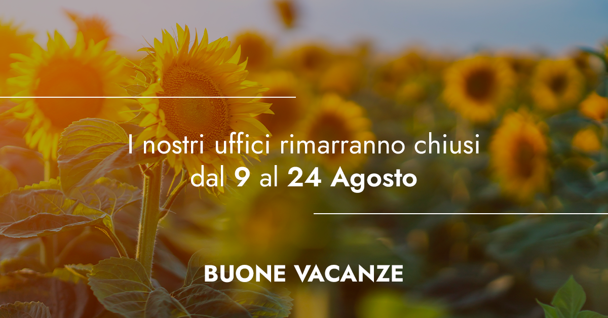 Dal 09 al 24 agosto i nostri reparti si fermeranno: pianifica ora i tuoi ordini!
